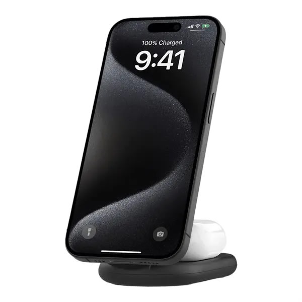 Get 15W of fast wireless charging to your iPhone 16/15/14/13/12 and 5W to your AirPods with our ultra-convenient MagSafe-compatible foldable charging stand. Leveraging Qi2 technology, the charging pad offers a secure, aligned magnetic connection for iPhone and up to twice the charging speed.