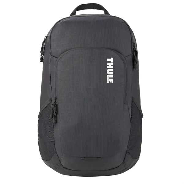Streamline your campus commute with the Thule Achiever 15'' Computer Backpack. This 24L backpack expertly stores your essentials, including a 15'' laptop and 10.1'' tablet, all protected by padded sleeves with SafeEdge construction. Stay organized with a quick-access pocket featuring a zippered compartment, mesh pocket, pen storage, and key leash. Keep your water bottle within reach in the side mesh pockets. Carry comfortably with the padded back panel featuring airflow channels, or grab and go with the webbing haul handle.